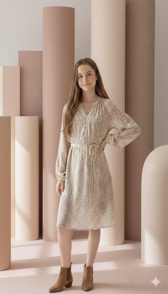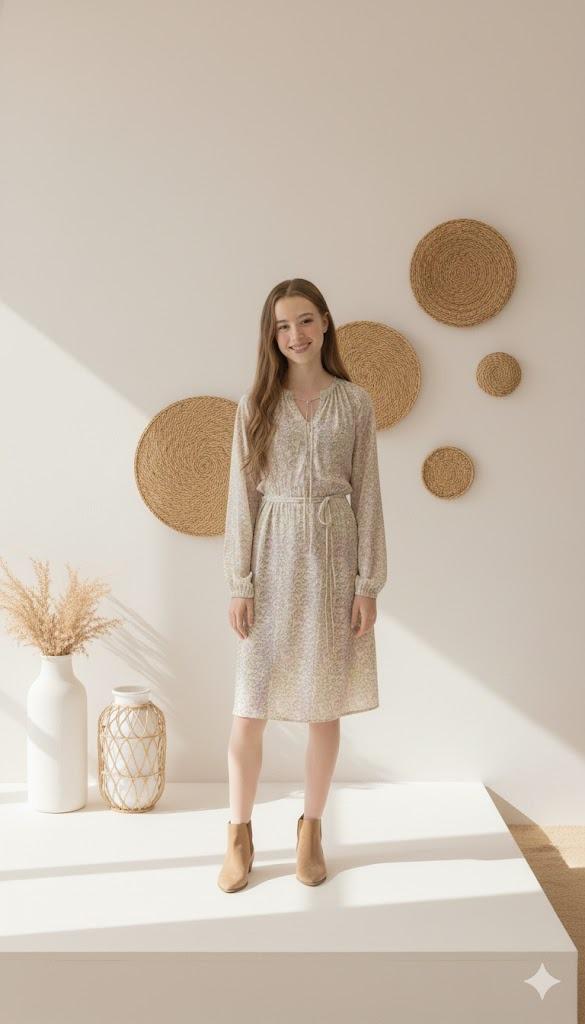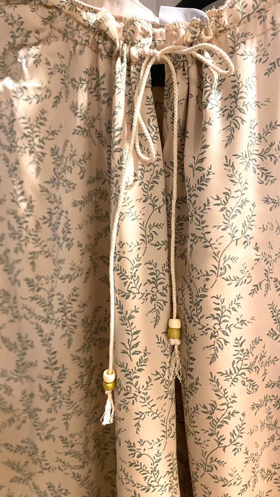 שמלה קלילה בבד ויסקוזה פרחונית עם שרוך שמאפשר לכווץ את פתח הצוואר