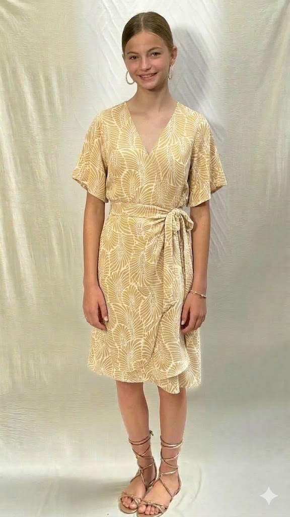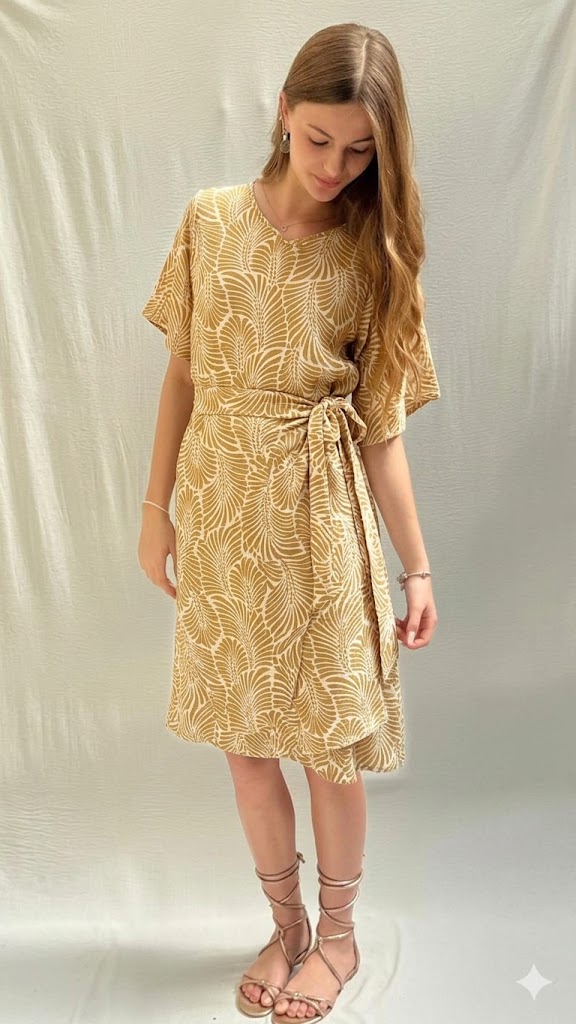שמלה בגזרת מעטפת סגורה בתפר צד מבד ויסקוזה נעים ומתאימה לקיץ